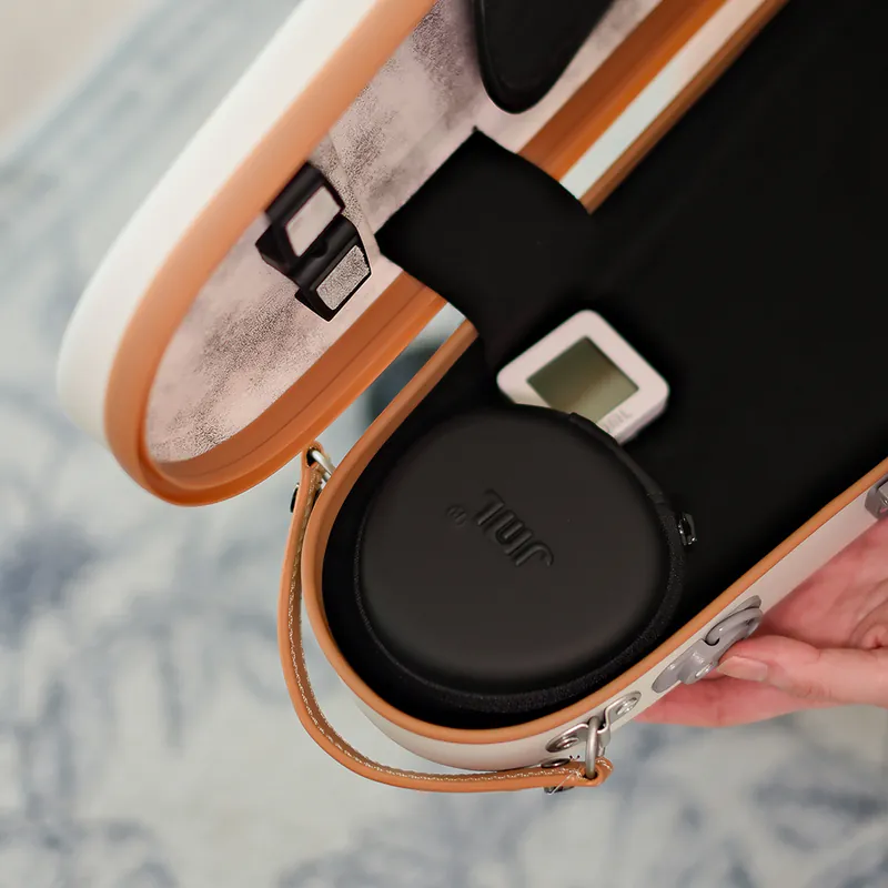 柔肌系列小提琴三角盒,外觀細緻優雅,觸感如肌膚般溫潤柔和,搭配多項創新設計,帶來極致輕便與貼心保護。